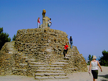 Für unseren eigenen Besuch wollten wir eigentlich den Bus nehmen. Da wir durch unseren Rundgang auf den Spuren Gaudis aber bereit so weit bergan in der Stadt gelaufen sind, wähnen wir uns bereits in der Nähe des Parks. Ein Irrtum, wie bald mit jedem Schritt deutlich wird. Irgendwie finden wir dann aber doch einen Weg von Santa Creu bis zu der Parkanlage. Was allerdings auch nicht schwierig ist. Durch seine Ausdehnung ist er kaum zu verfehlen. Man muss nur immer hoch, hoch und nochmals hochlaufen. Im Zweifelsfall hilft es auch, einen Katalanen nach dem Weg zum Park Güell zu fragen.