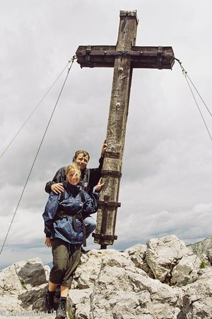 Beim anschließenden Aufstieg zum höchsten Punkt auf den Jenner sollte man Vorsicht walten lassen: Der Gipfel des Jenners (1874 m) ist zwar über Treppen und Ähnlichem sehr leicht zu ersteigern, oben aber ungesichert, was so viel heißt wie Festhalten und bei starkem Wind auf keinen Fall zu heftig herum feixen. Außerdem sollte man auf seine Mütze aufpassen. Diesen Rat hätte vor allem ein älterer Herr befolgen sollen, der plötzlich ohne Kopfbedeckung neben uns steht.