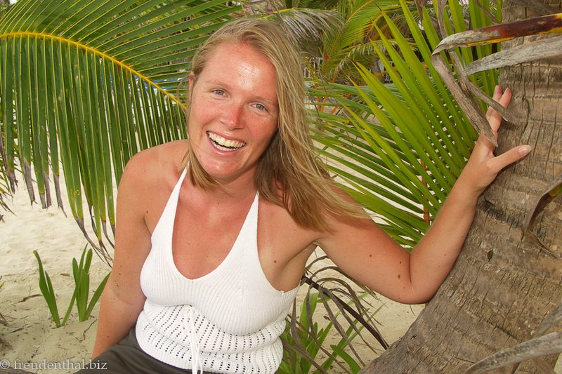 Ab und zu schaut einer der Gärtner beim Strand vorbei. Vielleicht klettert er auf eine der Palmen und pflückt ein paar Kokosnüsse, die er gegen ein kleines Trinkgeld an die Gäste weitergibt. Direkt am Strand befindet sich außerdem eine Pizzeria. Wobei, soweit wir gesehen haben, wird mittags in allen Restaurants das Gleiche angeboten.