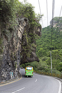 Rund eine Dreiviertelstunde später aber geht es endlich durchs Gebirge und wandeln sich die nächsten Stopps von verfressen zu aussichtsreich. In Chinauta blicken wir von einem Mirador ins Tal des Río Panches und etwas später halten wir an der so genannten Teufelsnase am Río Sumapaz. Beides sind Flüsse, deren Wasser sich später mit dem Río Magdalena vereinen. Und diesem Fluss oder Strom begegnen wir ab Girardot sowie fortan während der Rundreise immer wieder.