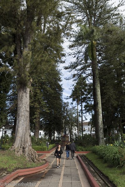 Wir beginnen am Parque Caldas, auf dem ein reges Treiben herrscht. Hier treffen sich die Bewohner der Stadt zum Klatsch und Tratsch, um zu spielen oder um Tauben zu füttern. Andere verweilen einfach auf den Parkbänken, beobachten das Geschehen um sie herum oder dösen einfach vor sich hin. Wir stehen vor der Kathedrale. Sie gehört zu den vielen Gebäuden Popayáns, die beim Großen Erdbeben vom 31. März 1983 schwere Schäden erlitt.