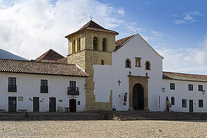 Angesichts des schönen Wetters halten wir uns nur kurz im Eingangsbereich der Kirche auf, schlendern dann aber lieber durch die Gassen der äußerst fotogenen Siedlung. 1954 wurde der gesamte Stadtkern unter Denkmalschutz gestellt, was dazu führte, dass er bis dato frei von Hochhäusern ist. Unser Spaziergang führt über wunderbares Kopfsteinpflaster zwischen einheitlich weiß verputzten Häusern hindurch. Die Gebäude haben höchstens zwei Stockwerke und sind mit niedlichen Balkonen verziert. Dazwischen ranken immer wieder bunte Bougainvilleen über die Mauern. Ihre Blütenpracht unterstreicht Villa de Leyva als koloniales Kleinod.