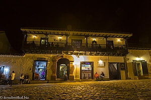 Umgeben ist die Plaza von pittoresken kolonialen Häusern sowie einer Kirche, die seit 1954 unter Denkmalschutz stehen. Die Häuser sind schön beleuchtet, im Gegensatz zum Platz. Hier muss erst vor wenigen Stunden ein stärkerer Regen niedergegangen sein. Denn einige Male stapfen wir im Dunkeln in Pfützen, die sich in den Löchern des Kopfsteinpflasters bilden. Wie in der Kolonialstadt Trinidad auf Kuba sind hier hohe Absätze ein absolutes No-Go – was insbesondere die jungen Kolumbianerinnen allerdings nicht davon abhält, sie trotzdem zu tragen.