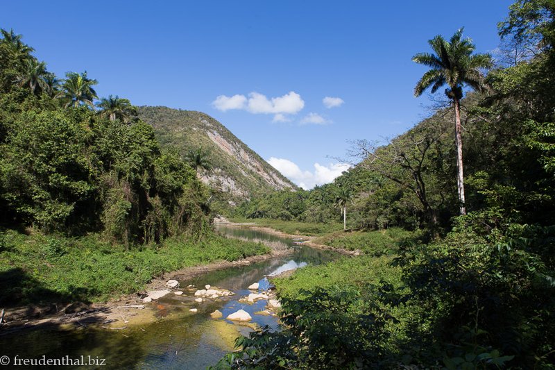 Das Wasser mag ja sehr sauber sein, aber glasklar ist es mit Sicherheit nicht – und außerdem ist es viel zu warm, um genügend Sauerstoff für Salmonidae (Lachsfische) aufzunehmen. Dafür tummeln sich viele Schwarzbarsche im Wasser, die hier in den 50er Jahre angesiedelt worden und seitdem die Sportfischer anlocken. Leider ist der Bestand seit ein paar Jahre aufgrund der Schwarzfischerei der Kubaner stark rückgängig. Als Konsequenz lassen die Hobbyangler die größeren Fische wieder frei, in der Hoffnung, dass sich die Fische wieder vermehren. Komischer Sport. Arme Fische!!!