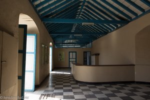 Das Gefängnis selbst ist ein sehr schöner Bau mit Rundbögen und einem viereckigen, von Arkaden umgebenen Innenhof. Einige der vergitterten Zellen stehen noch zur Besichtigung offen. Auch eine extrem schmale für die Schwerstverbrecher. Sie ist so eng, dass ein Sitzen oder Liegen nicht möglich ist. Nur an diesen wenigen Zellen ist die Haftanstalt noch zu erkennen. In den anderen Räumen sind mittlerweile Büros eingerichtet, in denen sich ein paar Beamte langweilen und auf den Feierabend warten – es seit denn, sie sitzen beim alltäglichen Tratsch im Innenhof.
