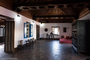 Aber wer reich und böse ist, der hat auch Neider und Feinde. Und diese bekämpft man am besten mit einer Kanone für den Hausgebrauch. Die Sicht vom Fenster reichte bis hinunter an den Hafen und über die Bucht von Santiago de Cuba. Kamen Piraten, so konnten diese direkt vom Aufenthaltsraum aus mit einer Kanonensalve standesgerecht empfangen werden. In ruhigen Zeiten verwöhnten sich die Herrschaften nur mit dem Allerfeinsten. Sie sammelten chinesisches und Meißner Porzellan, französische Vasen, Metallkerzenständer aus Madeira, Stücke aus Sevilla, Stühle aus Holland und auch sonst alles, was schön und teuer ist. So sind die Möbel aus Mahagoniholz gefertigt und ist im Sekretär ein Geheimfach eingebaut.