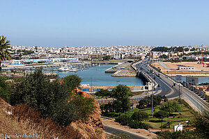 Wir verlassen die Klapperstörche und fahren zu unseren letzten Station in Rabat. Der Hassanturm ist das Wahrzeichen der Stadt. Kurz bevor wir auf der Seite Richtung Salé anhalten, erklärt uns Abdul, dass er hier leider nicht parken darf, sondern gleich weiterfahren und auf der anderen Seite der Anlage auf uns warten müsse. Das ist aber auch kein Problem, da wir tatsächlich nur vorne rein und hinten wieder raus laufen müssen - natürlich erst, nachdem wir die Gelegenheit genutzt haben, die Aussicht auf Salé bildlich festzuhalten.