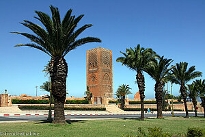 Eigentlich sollte hier einst die größte islamische Moschee entstehen. Nachdem Yaqub al-Mansur den Bau Ende des 12. Jahrhunderts in Auftrag gegeben hatte, starb er jedoch vor Abschluss der Arbeiten. Weil seine Nachfolger danach nach Marrakesch zogen, wurde das in großen Teilen fertiggestellte Projekt unvollendet liegen gelassen. Dem nicht genug, zerstörte im Jahr 1755 ein Erdbeben weite Teile der Anlage. Dadurch sind heute nur noch Teile der Mauer, verschieden hohe Säulen und der Turm zu sehen. Statt der geplanten 80 Meter ragt dieser übrigens nur 44 Meter hoch in den Himmel.