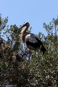 Sobald wir den Eingang passiert haben, kommen wir jedoch in einen schön angelegten Garten und hören dann auch schon das Geklapper von Weißstörchen. Im Nu sind die Meriniden vergessen und ist Annette auf der Suche nach den großen Vögeln. Wobei Suche? Tatsächlich müssen wir nur ein paar Meter laufen.