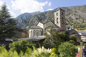 Über die Rambla Molines gelangen wir auf das Dach des Altstadtparkhauses. Der Platz darauf ist ansehnlich gestaltet und bietet uns eine schöne Sicht über die Dächer von Andorra la Vella sowie auf die Kirche Sant Eseve, unserem nächsten Ziel. Die Kirche ist romanischen Ursprungs und gilt als eines der Beispiele der traditionellen Granit-Architektur.