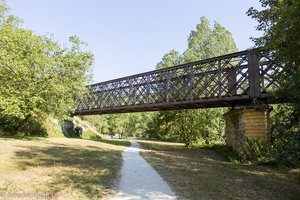 Bei Bouziès ist dieser gut als »Chemin de halage« ausgeschildert. Parkmöglichkeiten sind genügend vorhanden, sodass wir schon bald in Richtung Saint-Cirq-Lapopie aufbrechen. Nach wenigen Schritten führt der Weg unter einer ausgedienten Eisenbahnbrücke hindurch.