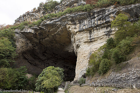 Der Rückweg von Saint-Lizier nach Mirepoix bringt uns zu einer weiteren außergewöhnlichen Höhle der Midi-Pyrénéen. Es ist die Grotte du Mas d'Azil. Was an dieser so besonders ist? In der Höhle wurden 30.000 Jahre alte Felsmalereien gefunden; und doch befindet sich direkt vor dem Besucherzentrum mitten in der Höhle eine Bushaltestelle. Die Grotte du Mas d'Azil ist so gewaltig, dass eine gut ausgebaute Straße – die D119 – hindurchführt. Sie misst eine Länge von 450 Meter, während die Decke stellenweise bis zu 60 Meter hoch ist.