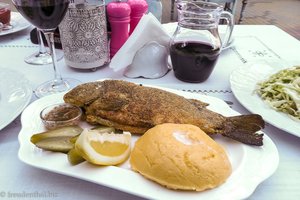 Dort wird ein Großteil der Lebensmittel geerntet und zum Frühstück, Mittag, Kaffee oder Abendessen serviert. Frischer geht es kaum. Die Limonade ist selbstgemacht, der Wein selbst gekeltert, dazu Fisch, Steak und Lamm – wir lassen es uns beide Abende richtig gut gehen.