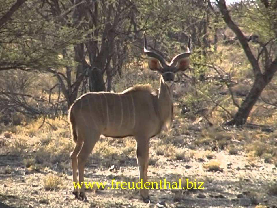 Bereits vor uns haben die Tiere das Wasserloch nahe der Lodge verlassen. Kaum aber haben wir den Sicherheitszaun durchquert, sehen wir schon wieder die ersten Kudus und Streifengnus. Und zudem eine Giraffe. Was heißt eine? Auf einmal sehen wir sie überall, wie sie mit ihren langen Hälsen aus der buschigen Landschaft herausragen.