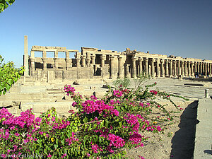 können uns also (fast) ungestört in den zwei Säulenreihen sowie den Gebäuden hinter des ersten Pylons umschauen, bevor wir uns im Schatten einer Baumgruppe das nächste (lebenswichtige) Kaltgetränk gönnen.