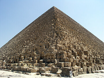 Stattdessen erzählt unser Reiseleiter ausführlich, dass die Kalksteinblöcke ganz in der Nähe abgebaut wurden, die einzelnen Blöcke im Schnitt 2,5 Tonnen wiegen und die gesamte Pyramide ein Gewicht von circa 6,25 Millionen Tonnen besitzt. Erst nach gut zehn Minuten schließt er seinen Bericht und fragt, wie viel Zeit wir zum Anschauen und Fotografieren brauchen.