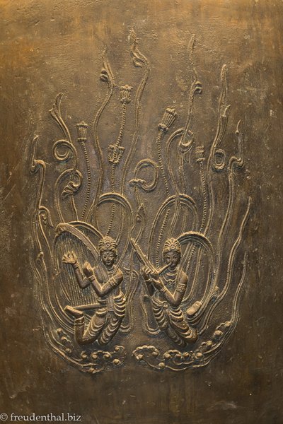 Ist das Gebäude öffentlich zugänglich oder verspielen wir mal wieder unser Nirvana? Mir ist unwohl, doch Lars kennt da nichts. Brav ziehen wir die Schuhe aus und spazieren durch die Gebäude des Haedongsa. Das Interieur des Tempels ist schlicht gehalten. Farbenfrohe Gemälde erzählen bildlich die Geschichten Buddhas. Ebenfalls wunderschön anzusehen sind die geschnitzten Lotosblüten an den Fenstergittern. Die beiden Leute, denen wir im Tempel begegnen, grüßen freundlich. Mehr noch, eine Frau deutet auf ein Regal, in das wir unsere Schuhe für die Zeit im Tempel stellen können. So fühle ich mich gleich viel wohler und willkommen. Lars hat ja Recht: man muss sich hin und wieder etwas trauen. Und Andong ist eine kleine Stadt, in der man sich so richtig wohl fühlen kann.