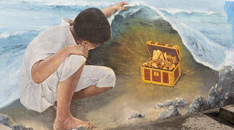 Wie der Name vielleicht erkennen lässt, steht das Seongjingol Mural Village auf verschiedenen Mauerstufen, die über schmale, teils sehr steile Wege miteinander verbunden sind. Es ist ein kleines Dorf mit Hanoks und terrassierten Gärten, die dicht mit Kohl, Paprika und Wurzelgemüse bepflanzt sind. Die Hauswände sind hübsch und aufwendig bemalt. Überall sitzen Statuen von Kindern, Häschen und Katzen. Das Dorf wirkt verspielt, ist aber bewohnt. In den Höfen und auf den Bänken werden Chilischoten getrocknet. Es sind die fiesen roten Schoten, die das koreanische Essen so höllisch scharf machen und manch eine europäische Zunge zur Kapitulation zwingen.