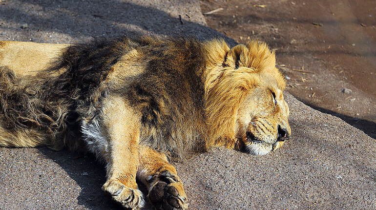Auch danach wirkt alles freundlich. Während die ebenfalls in Australien heimischen Bennett-Wallaby, eine Känguru-Art, und südamerikanischen Nandus in und um ihre Gehege spazieren, schaut ein Lama vergnügt zu uns herüber. Letztere sind verwandt mit den Guanakos, die sich über Nachwuchs freuen. Wenige Schritte weiter wird es spannend. Wir erreichen das Löwengehege. Majestätisch und mit prächtiger Mähne wird die Szenerie vom König der Tiere beherrscht. Seine Rolle ist denkbar einfach: er liegt einfach da und pennt. Dennoch empfiehlt es sich auch hier, Abstand zu halten. Großkatzen haben für gewöhnlich tierisch Mundgeruch.