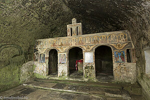 Die alten byzantinischen Fresken aus dem 14. Jahrhundert sind heute noch in Teilen erhalten und die Motive zum Teil sogar gut zu erkennen. Die für Rumänien einzigartige Höhlenkirche ist baugleich mit den Felsenkirchen im türkischen Kappadokien. Ein großer Unterschied ist jedoch, dass hier noch immer Gottesdienste gefeiert werden.