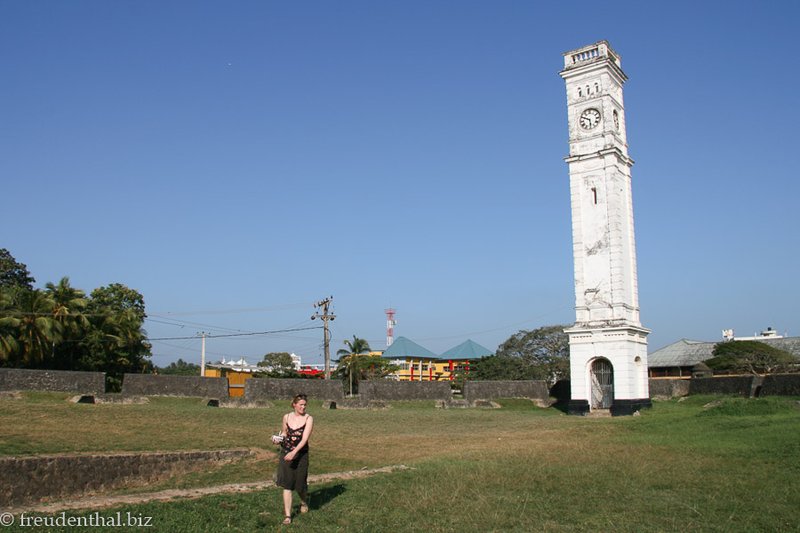 Ebenfalls wenig spektakulär ist das Matara Fort. Abgesehen von dem obligatorischen Uhrturm erinnern lediglich ein paar wuchtige Mauern an die koloniale Vergangenheit. Sonst gibt es dort nichts außer Rasenflächen zu sehen. Das ist jedoch immer noch mehr als wir im Star Fort zu Gesicht bekommen. Dieses nämlich ist wegen Bauarbeiten abgesperrt, als wir davorstehen.