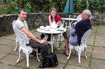 Somit haben wir nicht nur jede Menge Mitbringsel für unsere Daheimgebliebenen bekommen, sondern außerdem uns selbst für einige Zeit mit bestem Tee eingedeckt. Aber auch wer das feine Aroma des Hochland-Tees nicht zu schätzen weiß, erschließt sich zumindest von der Terrasse der Mackwoods-Teestube ein wunderschöner Ausblick über die angrenzenden Berghänge mit den unzähligen Teebüschen.