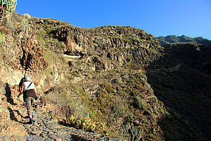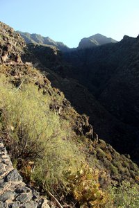 Dann aber geht es auch schon wieder heraus aus dem Kessel und wandern wir auf derselben Route zurück nach Adeje. Dabei zeigt sich, dass wir recht hatten, eine frühe Zeit zu wählen. Denn auch wenn es immer noch vormittags ist und wir mitten im Winter nach Teneriffa geflogen sind,