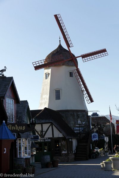 Es waren dänische Pädagogen, welche ihre Siedlung auf einem ehemaligen spanischen Missionsland gründeten. Sie errichteten eine Volksschule und später auch ein College. Bei ihrer Bauweise haben sie sich durchgängig am dänischen Fachwerkhausstil gehalten. Was uns heute an den Europapark in Rust erinnert, gefällt natürlich auch anderen. So hat sich Solvang mit den hübschen Häuschen und Windmühlen zu einer bedeutenden Touristenattraktion entwickelt.