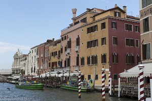 Wir genießen die Fahrt entlang der herrschaftlichen Häuser, eh wir bei der San Marco Vallaresso prompt eine Station zu früh aussteigen. Halb so schlimm, wir reisen mit leichtem Gepäck. Entlang der Fondamenta dei Giardini stehen einige Marktstände, die venezianische Masken an den Mann bringen wollen. Wenige Schritte weiter öffnet sich der Blick auf den Markusturm. Wir sind angekommen und einfach nur glücklich.