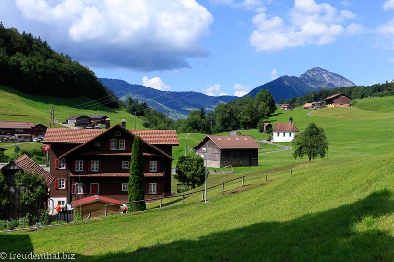 Nach einem zweiten, kleinen Frühstück und einem kurzen Rundgang durch das Restaurant mit seiner gemütlichen Gaststube und dem Massenlager direkt unterm Dach brechen wir schließlich wieder auf. Immerhin liegen mehr als 600 Höhenmeter vor uns, ehe wir vom Niederbauen-Chulm hinab auf die Seen schauen können.