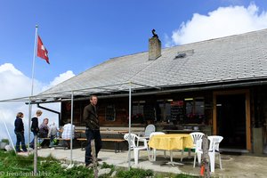 Oben angekommen, lädt das Alprestaurant Weid zum Verweilen ein. Als Besonderheit stehen auf der Terrasse mehrere Glaskaraffen mit Pfefferminztee für den ersten Durst bereit. Doch auch wer bodenständige Kost und selbstgebackene Kuchen zu schätzen weiß, wird sich hier oben sicher wohl fühlen.